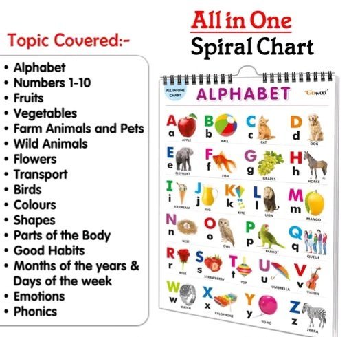 English Chart For Kids (16 Charts ) 36 x 50 cm – Children Spiral Wall Picture Chart