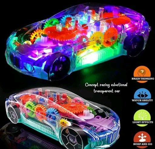 Toys & Games Racing Car with 3D Flashing Lights car with functions: Forward/ Backward, Stop Electric driving, colorful lighting, mechanical system of the simulation gear, pleasant sound effects. Unique Design – Transparent design, one Can see the gear inside, helps the kids to know mechanical concept. Colorful LED lights support your baby’s intellectual development, would improve your baby’s hand-eye coordination, is a good family game and will help the parent-child relationship Gear Driving Effect- Increases children’s observation ability. Rich color. Increase children’s cognitive ability.