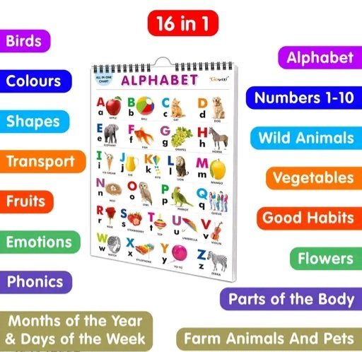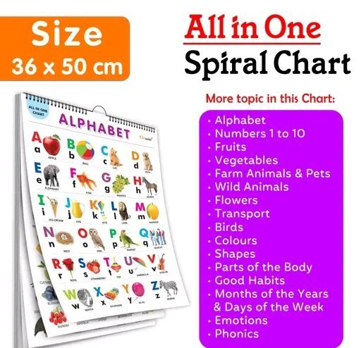 English Chart For Kids (16 Charts ) 36 x 50 cm – Children Spiral Wall Picture Chart