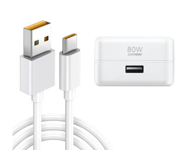 80W Supervooc Fast USB Charger With White USB to C Cable For Realme